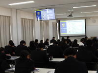 講演会では、本校の卒業生である石沢貴弘様を講師としてお招きし、ご講演をしていただきました。「高校最底辺だった私が、今教壇に立つまで」と題し、ご自身の経歴と教員としてご活躍されている現在のお話を通して、在校生へのアドバイスをいただきました。